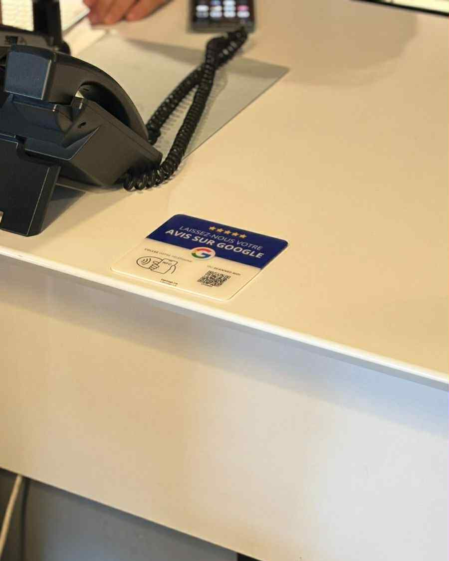 • Posée près de la caisse : +62 avis en 1 mois, notre note est passée de 4,3 à 4,8 !